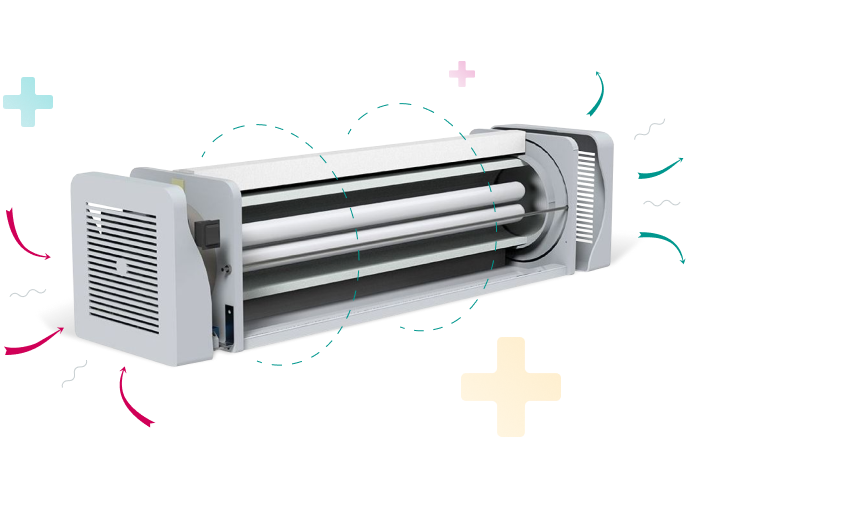 Воздух обеззараживается методом рециркуляции через лучи ультрафиолета. УФ лучи заблокированы внутри устройства и остаются опасными только для микробов в воздухе.